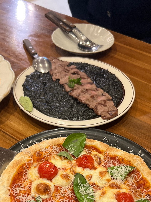 먹물의 은은한 풍미가 느껴지는 리조또는 고소하고 부드러웠고,